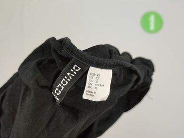 Czarna koszulka damska H&M Divided - Krój: dopasowany T-shirt z krótkim rękawem i okrągłym dekoltem - Rozmiar z metki: L (EUR), US L, CA L, MX G, CN 175/104B - Kolor: czarny - Materiał: 89% polies...