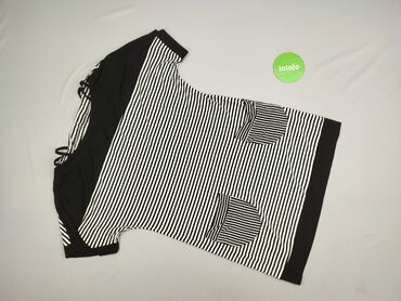 Bluzka damska z krótkim rękawem, w kolorze czarno-białym, ozdobiona geometrycznym wzorem. Dekolt bluzki jest okrągły, zakończony małym rozcięciem z przodu. Rękawy o wzorze kontrastującym z główną c...