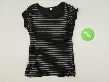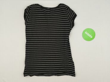 T-shirt damski w paski - Kolor: biało-czarne poziome pasy - Krój: klasyczny, lekko dopasowany - Rękaw: krótki - Dekolt: okrągły, obszyty czarną lamówką - Rozmiar z metki: S - Materiał: miękka dzia...