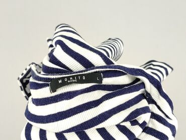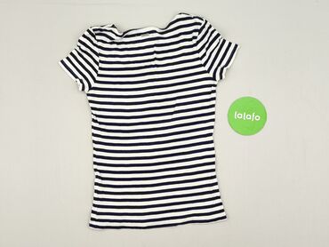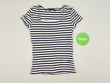 T-shirt damski Mohito Collection, rozmiar M. - Kolor: granatowy - Krój: dopasowany, krótki rękaw - Dekolt: okrągły - Wykończenia: ściągacze przy dekolcie i rękawach w paski turkusowo-różowe - Dzia...