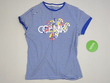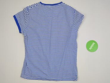 T-shirt damski w paski, rozmiar S - Krój: klasyczny, z krótkim rękawem i okrągłym dekoltem - Wzór: biało-granatowe, poziome paski w marynistycznym stylu - Detal: subtelne aplikacje z drobnych dżet...
