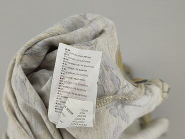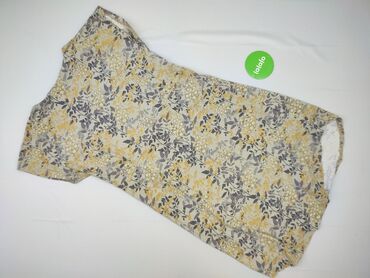 Sukienka damska w kwiaty - Krój: ołówkowy, długość za kolano, krótkie rękawy, okrągły dekolt - Kolor: pastelowy żółty z nadrukiem kwiatowym w odcieniach oliwkowej zieleni - Tkanina: lekka, miękko ...