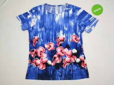 Koszulka damska w kwiaty - Kolor: granatowy z białym, drobnym kwiecistym nadrukiem - Krój: luźny T‑shirt z krótkim rękawem - Dekolt: w kształcie litery V - Rozmiar z metki: XL - Materiał: lekka, g...