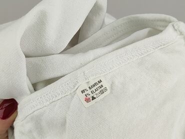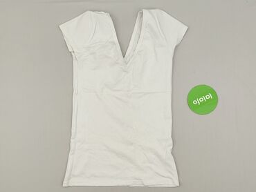 Biała damska koszulka basic - Krój: dopasowany, krótki rękaw, okrągły dekolt - Rozmiar z metki: XS - Kolor: biały - Materiał: 95% bawełna, 5% poliester – miękka, elastyczna dzianina - Przeznaczeni...