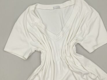 T-shirt damski z dekoltem w serek - Kolor: bardzo jasny, pastelowy róż/beż (pudrowy odcień) - Krój: luźny, lekko oversize, krótkie rękawy, prosty dół - Dekolt: V-neck z podwójną lamówką - Materiał:...