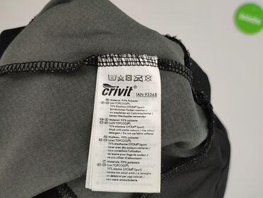 Czarna koszulka sportowa marki Crivit Sports, wykonana w 90% z poliestru i 10% z elastanu. Posiada krótkie rękawy i okrągły dekolt. Koszulka jest przeznaczona dla kobiet i idealnie sprawdzi się podczas aktywności fizycznej, zapewniając komfort i swobodę ruchów. Materiał jest elastyczny i oddychający, co zwiększa wygodę użytkowania.