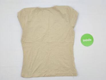Beżowa damska koszulka z krótkim rękawem - Klasyczny, lekko zaokrąglony dekolt - Prosty krój z delikatnie wydłużonym tyłem - Miękka, cienka dzianina bawełniana (oddychająca, elastyczna) - Neutraln...