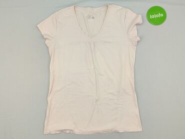 Bluzka damska BEL0VED WOMAN - Krój: klasyczny T-shirt z dekoltem w serek (V-neck) i krótkim rękawem - Rozmiar z metki: M - Kolor: pudrowy róż - Materiał: miękka, cienka dzianina bawełniana z domie...