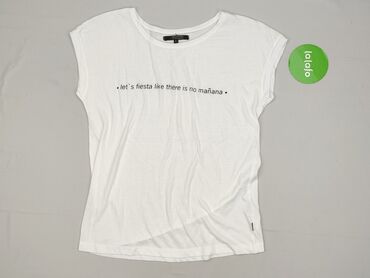 - Model: biały T‑shirt z krótkim rękawem typu cap/zakładany, okrągły dekolt