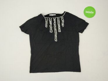 Czarna koszulka damska z krótkim rękawem, ozdobiona na przodzie kolorowym haftem w kształcie serca. Wzór serca składa się z geometrycznych linii w odcieniach różu, turkusu, czerwieni i fioletu, co ...