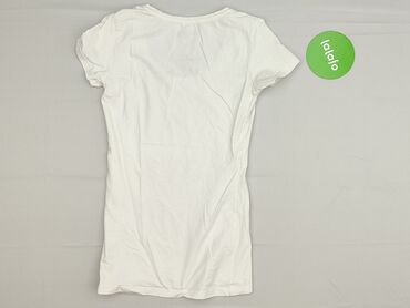 Biały, półprzezroczysty top z krótkim rękawem. Dekolt okrągły, dół prosty. Materiał z wzorem w faliste linie. Idealny na letnie dni lub jako dodatek do warstwowych stylizacji. - Rozmiar: EUR 34 - M...