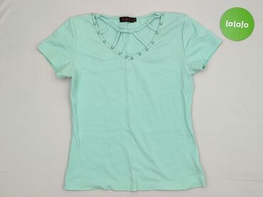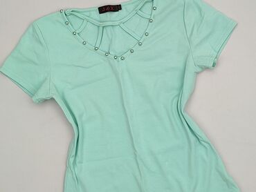 T-shirt damski z dekoltem w serek - Kolor: jasna zieleń melanż - Krój: luźny, nietoperzowe rękawki (krótkie, kimonowe), prosty dół - Dekolt: V-neck - Rozmiar z metki: M - Materiał: cienka, miękka,...