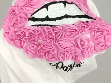 - Przód: duży aplikowany motyw ust z 3D różowymi „różyczkami” z tkaniny, środek haftowany (biało‑czarne zęby/obrys). Pod grafiką czarny haft „Paris”.