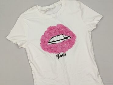 Biała koszulka z krótkim rękawem z kolorowym, błyszczącym nadrukiem „OT” w czterech panelach (żółty, zielony, różowy, niebieski). Front zdobiony dużą ilością aplikacji: cyrkonie/kryształki i drobne...