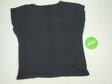 Czarna damska koszulka z nadrukiem „FASHION emergency”. - Krój: dopasowany, z krótkimi, lekko opadającymi rękawkami - Dekolt: łódkowy - Kolor: czarny, nadruk biały na środku - Rozmiar z metki: S -...