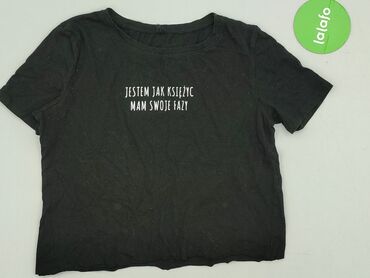 Czarna koszulka damska Sinsay, rozmiar S. - Nadruk z przodu: biały napis „to the MOON and back” z grafiką księżyca. - Klasyczny krój z krótkim rękawem i okrągłym dekoltem. - Materiał: 100% ba...