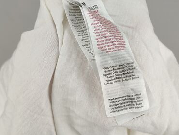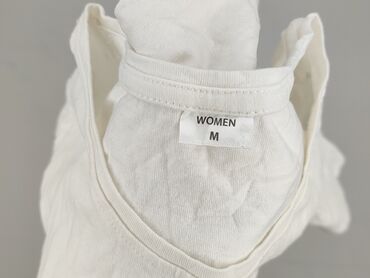 Biała koszulka damska z nadrukiem - Krój: luźny top z krótkim, kimonowym rękawem i okrągłym dekoltem - Rozmiar: M (oznaczenie na metce) - Materiał: 100% bawełna (metka materiałowa) - Kolor: biały ...