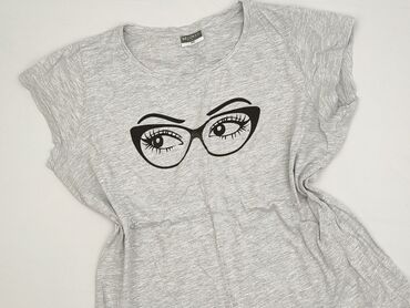 T-shirt damski Beloved Woman - Kolor: jasnoszary (melanż) - Rozmiar z metki: M - Krój: klasyczny, z krótkim rękawem, okrągły dekolt - Nadruk z przodu: graficzne oczy w okularach (czarny print) - M...