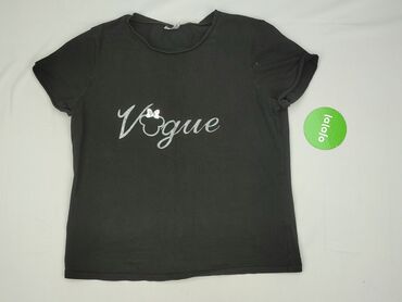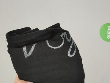 Czarna koszulka damska z krótkim rękawem, rozmiar M. Na przodzie cztery prostokątne panele z błyszczącą, srebrną aplikacją obszytą cekinami w odcieniach srebra i niebieskiego. W panelach kolorowe n...