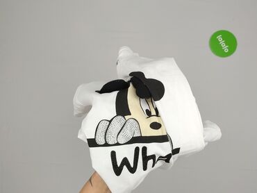 Biała koszulka z krótkim rękawem z kolorowym, błyszczącym nadrukiem „OT” w czterech panelach (żółty, zielony, różowy, niebieski). Front zdobiony dużą ilością aplikacji: cyrkonie/kryształki i drobne...