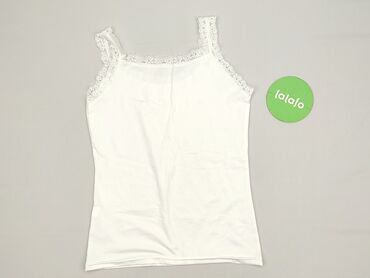 Biała koszulka bez rękawów z koronką – Iana Basic, rozmiar M - Fason: top na ramiączkach typu tank, z dekoltem w kształcie litery V - Wykończenie: szeroka, miękka koronka wokół dekoltu z przodu i ...