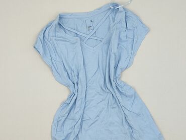 Bluzka/tunika damska w kolorze jasnego błękitu. - Krój: luźniejszy, z efektowną falbaną doszytą na dole, asymetryczne wykończenie tyłu. - Rękaw: 3/4. - Dekolt: okrągły. - Materiał: 65% bawełna, 35...Stan: