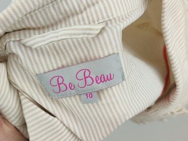Beżowa marynarka damska z bawełny - Materiał: 100% bawełna (metka “100% BAWEŁNA”) - Krój: taliowany, podkreślający sylwetkę - Zapięcie: 3 guziki z tłoczeniem kwiatowym - Kołnierz: klasyczne, szpic...Be Beau – damska koszulowa marynarka w paski