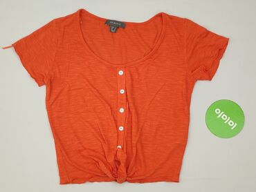 Bluzka damska Primark - Kolor: intensywny pomarańcz - Krój: krótka, lekko crop top, wiązanie z przodu na supeł - Dekolt: szeroki, zaokrąglony - Rękaw: krótki - Zapięcie/dekor: rząd białych guzików...