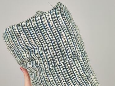 - Tkanina o fakturze boucle z poziomymi, melanżowymi pasami w odcieniach zieleni, turkusu, granatu i ecru