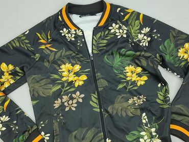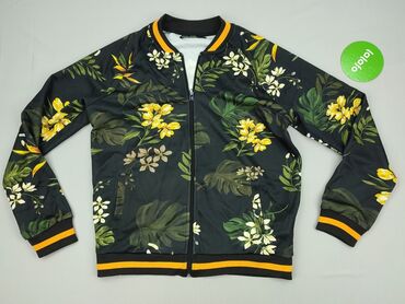 Kurtka bomberka w kwiatowy wzór - Kolorystyka: intensywna, wielobarwna paleta – róż, żółć, fiolet, zieleń; motyw dużych kwiatów na całej powierzchni. - Krój: klasyczna bomberka z czarnymi, elastyc...