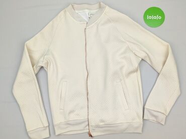 Damska kurtka bomber w kolorze ecru/kremowym - Fason: bomberka na suwak - Materiał: 97% poliester, 3% elastan (metka “Made in Italy”) - Rozmiar z metki: M - Wykończenia: elastyczne ściągacze przy ...