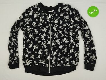Damska bluza/krótka kurtka z kapturem, na zamek - Rozmiar z metki: 42 - Przeznaczenie: dla kobiet (nie dziecięce) - Wzór: czarno‑srebrny, motywy łańcuchów i medali, geometryczne lamówki - Fason: k...