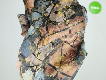 - Kolor/print: wielobarwny wzór w stylu abstrakcyjnego marmuru z czarnymi liniami; odcienie niebieskiego, beżu, różu, złota i czerni