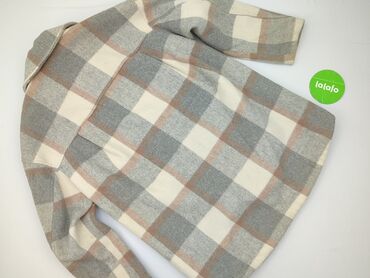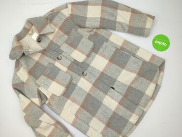 Kurtka damska H&M w kratę, idealna na przejściowe pory roku. Charakteryzuje się klasycznym wzorem w odcieniach szarości, kremu i brązu. Posiada kołnierz, długie rękawy oraz zapięcie na guziki. Praktyczne cztery kieszenie z przodu dodają funkcjonalności. Wygodna opcja do noszenia na co dzień.