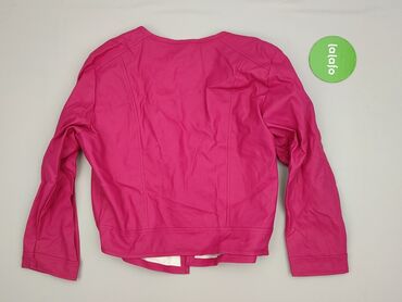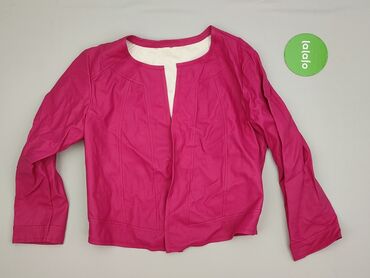 Różowy damski żakiet bez zapięcia - Krój: lekko dopasowany, bez kołnierza, otwarty przód - Rękawy: długie, mankiety ozdobione trzema złotymi guzikami - Rozmiar z metki: M - Materiał: 100% polieste...