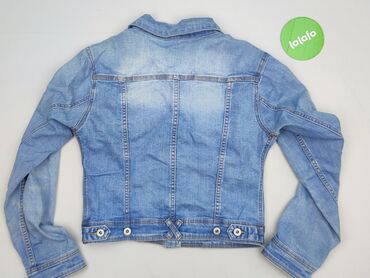 Jeansowa kurtka damska (rozmiar S) - Kolor: jasny denim z delikatnymi przetarciami i cieniowaniem - Krój: krótka, taliowana, klasyczny kołnierz - Zapięcie: rząd metalowych guzików z przodu - Kiesz...