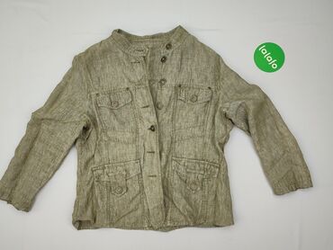 Damska kurtka denimowa w kolorze beżowym/piaskowym, fason bez kołnierza. - Materiał: denim/bawełna z domieszką elastanu (elastyczna, miękka w dotyku) - Rozmiar z metki: L (Large) - Krój: lekko tal...
