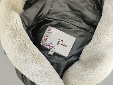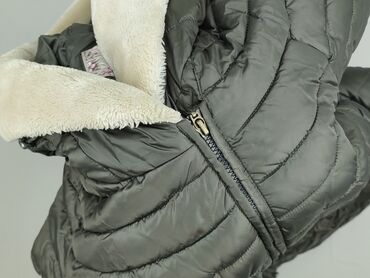 Damska zimowa kurtka puchowa w kolorze taupe/szaro‑beżowym. - Fason: średnia długość (do bioder), taliowanie pionowymi przeszyciami - Zapięcie: suwak główny + ozdobne paski z metalowymi kółkami z ...