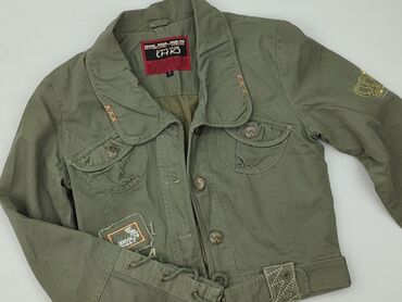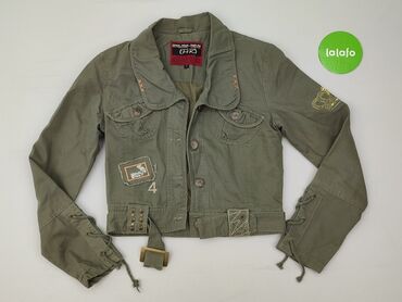 Zielona damska kurtka z kapturem - Rozmiar: S (na metce S / 12) - Skład materiału: 52% poliester, 45% bawełna, 3% spandex - Produkcja: Made in Italy - Krój: krótka, lekko taliowana z marszczeniami...