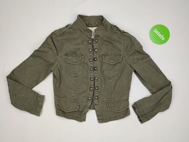 Krótka damska kurtka/marynarka w stylu militarnym Denim Co. - Model: Denim Co - Rozmiar z metki: EU 42 (UK 14) - Fason: krótki, dopasowany, inspirowany mundurem/band jacket - Kolor: oliwkowo‑szary...