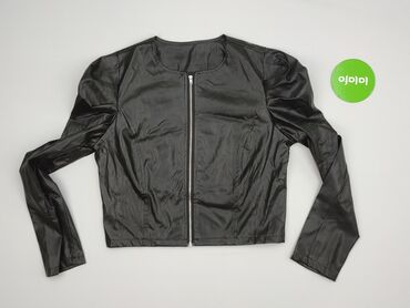 Damska czarna kurtka/żakiet bez zapięcia - Krój: lekko taliowany, bez kołnierza, otwarty front - Materiał: skóra ekologiczna (miękka, elastyczna), podszycie tekstylne - Rękawy: długie - Detale: pi...Stan: