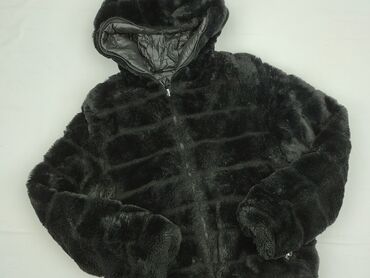 Damska kurtka z kapturem z miękkiego sztucznego futerka - Kolor: czarny (połyskujące, pluszowe wykończenie) - Podszewka kaptura: metaliczna złota, ocieplająca i efektowna - Zapięcie: zamek błyskaw...Stan: