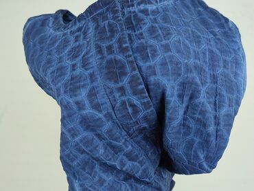 Kurtka damska marki Zibib w kolorze niebieskim. Charakteryzuje się okrągłym dekoltem i zapięciem na guziki. Cała powierzchnia kurtki pokryta jest geometrycznym wzorem z kółek, który dodaje jej unikalnego charakteru. Kurtka posiada długie rękawy i jest wyposażona w dwie kieszenie z przodu. Idealna do codziennych stylizacji, może służyć jako lekkie okrycie wierzchnie.