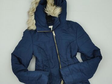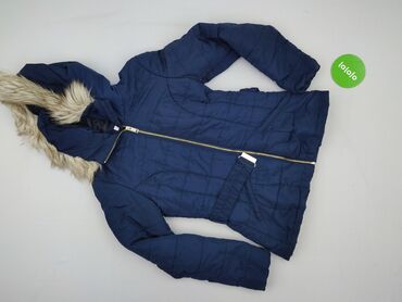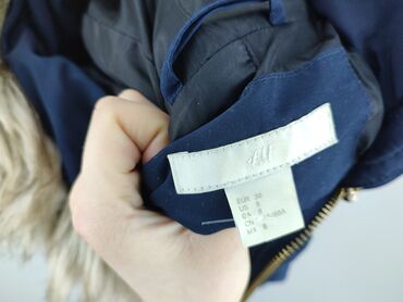 Granatowa kurtka damska MAMA (maternity), rozmiar M. - Model pikowany, długość do połowy uda - Asymetryczny zamek główny z przodu - Dwa skośne kieszenie zapinane na złote zamki - Kaptur z odpinany...