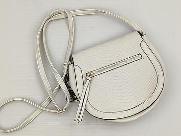 Damska torebka na ramię/listonoszka w kolorze białym Opis: - Klasyczna klapka z magnetycznym zapięciem - Ozdobne metalowe kółka w kolorze srebrnym na froncie - Kontrastowe, czarne lamowanie krawęd...