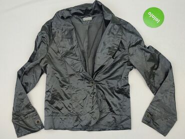 Damski żakiet/szary krótki płaszcz - Kolor: grafitowy/szary - Krój: taliowany, długość do bioder, lekko rozkloszowany dół - Zapięcie: dwa guziki z przodu + wewnętrzna podszewka - Kołnierz: szeroki...