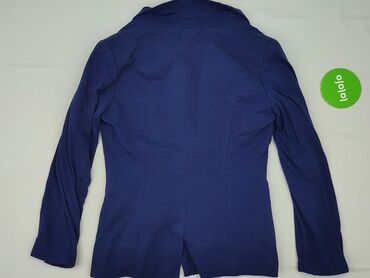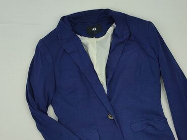 Marynarka damska H&M - Kolor: granatowy - Fason: klasyczna, bez zapięcia (otwarta), dopasowana, z klapami bez kołnierza - Rozmiar z metki: EUR 36 (US 6, CA 6, CN 165/88A, MX 6) - Materiał: tkanina...