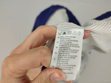 Marynarka damska H&M - Rozmiar z metki: EU 38 (US/CA 8) - Krój: taliowany, jednorzędowy, z klapami - Zapięcie: 2 guziki z przodu - Wzór: pionowe pasy granatowo-białe - Kolor podszewki: beżowy - Ki...