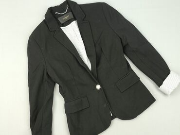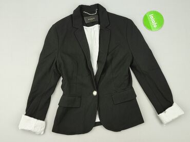 Czarna marynarka damska marki Reserved. Charakteryzuje się luźnym fasonem i jest zapinana na jeden guzik. Posiada klapy i długie rękawy, co nadaje jej klasyczny wygląd. Idealna do stylizacji zarówn...