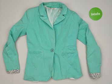 Żakiet damski turkusowy - Klasyczny fason z klapami, zapinany na jeden guzik - Dwie naszywane kieszenie z przodu - Podszewka w dopasowanym, jaśniejszym odcieniu - Rozmiar z metki: EU 36 / US 6 / C...